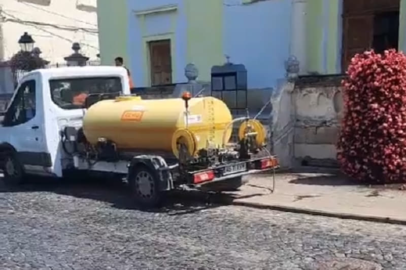 Apă amestacată cu parfum, pentru stropirea străzilor principale din Blaj ca măsura anticaniculă