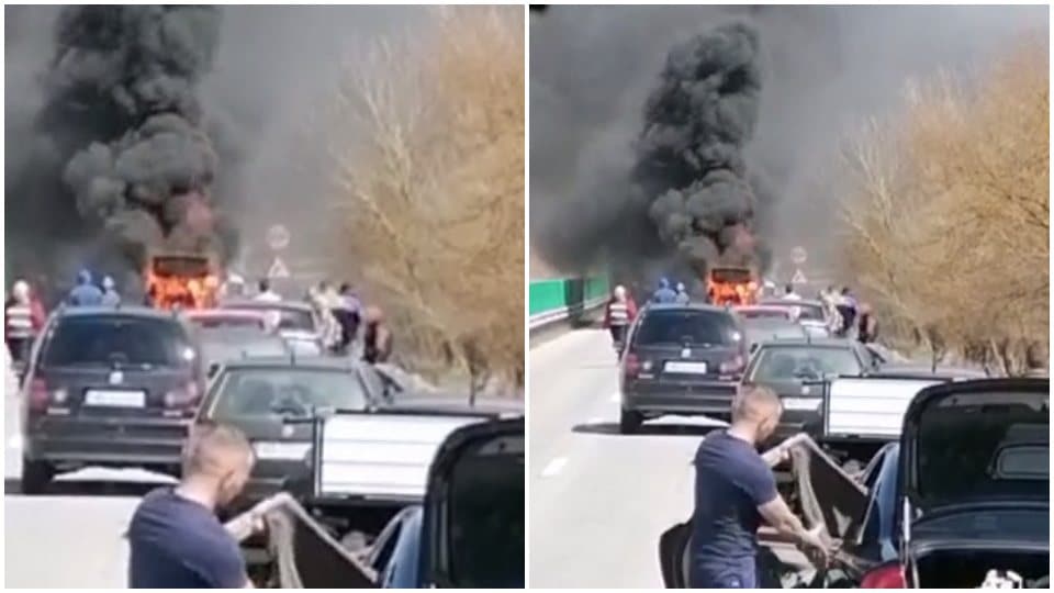 Autoturism mistuit de flăcări pe DN 14B, între Cistei și Crăciunelu de Jos