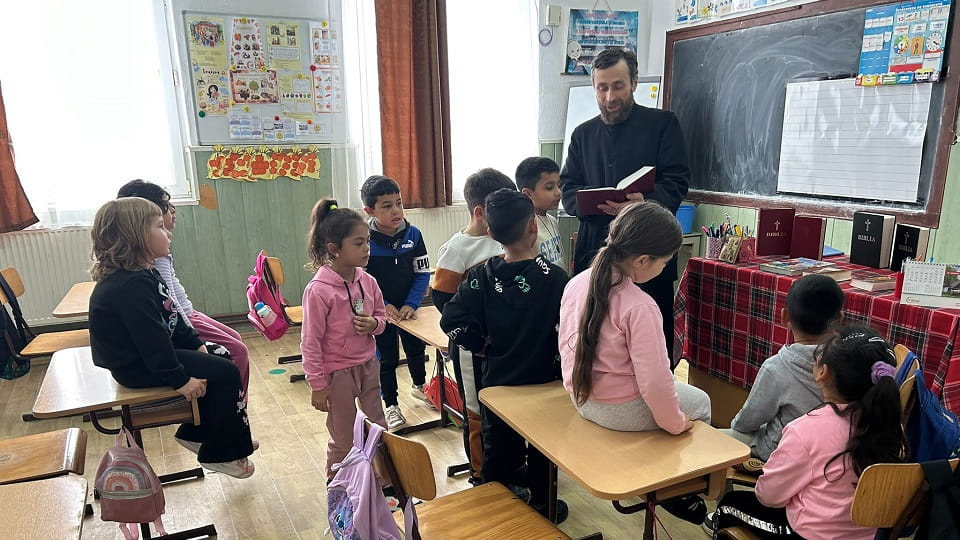 Un moment important al zilei a fost reprezentat de întâlnirea subsemnatului, preot Daniel Cirebea, paroh al parohiei Sânmiclăuș, protopopiatul Blaj, cu elevii școlii din localitate. În cadrul cuvântului pe care l-am rostit, am prezentat un scurt istoric al Bibliei pe înțelesul copiilor, subliniind importanța citirii zilnice a câtorva capitole din Sfânta Scriptură. Pentru a stârni apetitul pentru lectură, am oferit tinerilor câteva versete scripturistice semnificative, lansând învățăceilor și constantul îndemn la rugăciune continuă.