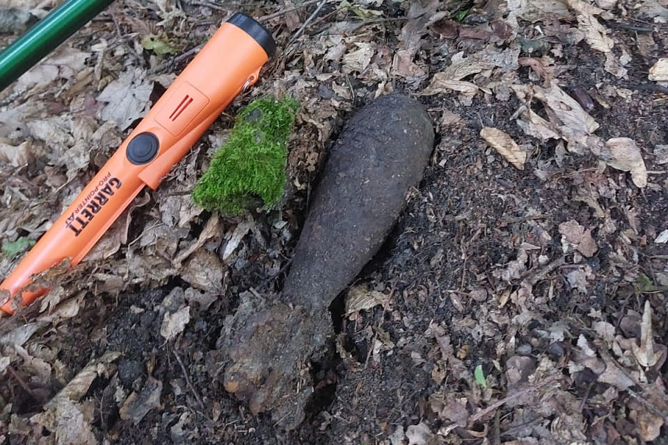 Bombă de aruncător 60 mm, găsită într-o pădure din satul Lunca, comuna Valea Lungă