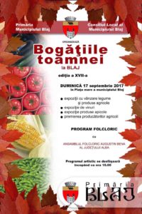 Duminică, 17 septembrie 2017, are loc cea de-a XVII-a ediție a manifestării „Bogăţiile toamnei”, la BLAJ