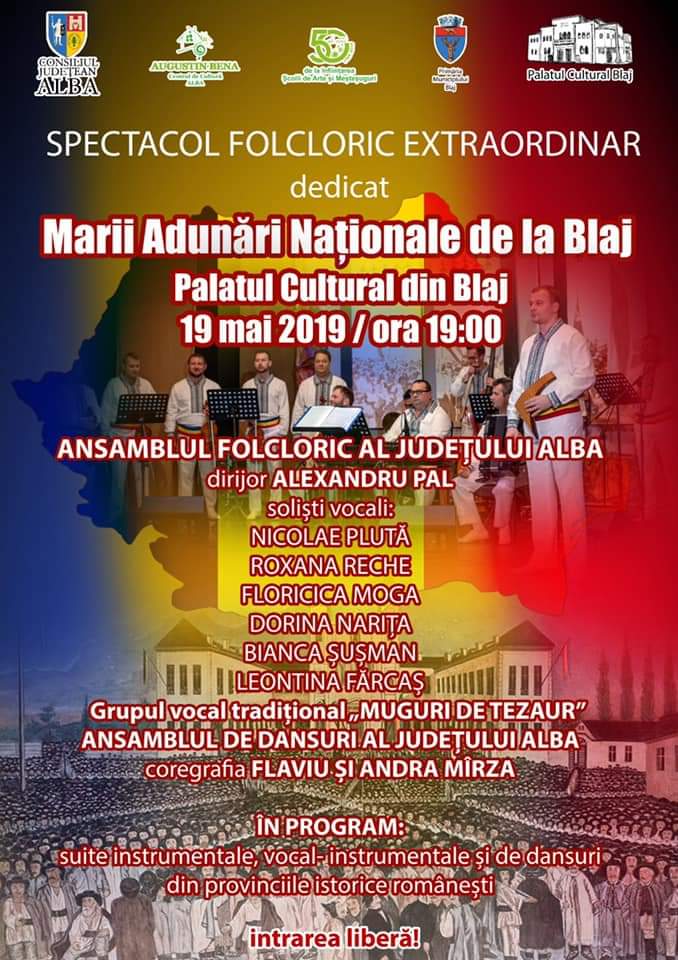 „Ansamblul Folcloric al Județului Alba va veni în fața publicului cu suite instrumentale, vocal-instrumentale și de dansuri din provinciile istorice românești, într-un concept muzical special pregătit pentru acest eveniment. Este modul în care celebrăm artistic prin folclor autentic Marea Adunare Națională de la Blaj, un moment istoric de importanță deosebită pentru toți românii”, a spus Alexandru Pal, managerul Centrului de Cultură „Augustin Bena” Alba.