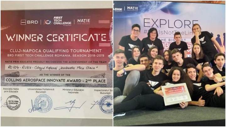 Echipa de robotică a Colegiului Național „Inochente Micu Clain” s-a clasat pe locul secund, la categoria Collins Aerospace Innovate Award, a competiției BRD FIRST Tech Challenge România
