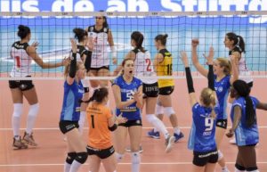 Iarăși duel spectaculos între Ioana Baciu – 29 de puncte și Vittoria Piani – 27, la vizitatoare neevoluând Viktoria Trcol. Până la setul decisiv, se părea că istoria se repetă, comparativ cu primul meci, când Bajul a remontat de la 0-2 și a câștigat. La fel au stat lucrurile și în retur, când Blajul a revenit de la 0-2, a egalat, dar a cedat, 15-13!!!