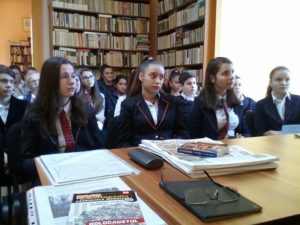 Elevii au fost fermecați de istorisirile domnului Faibiș, care i-a familiarizat cu istoria poporului evreu, le-a explicat etimologia cuvântului holocaust, această pată grea din istoria comunității, care a luat peste șase milioane de oameni , vinovați doar de faptul că s-au născut evrei. „O națiune sau o persoană poate găsi diverse modalitățI de a se confrunta cu propriul trecut, dar nici una pentru a-l ignora…Pentru noi, aceasta este o misiune sacrcră: să onorăm adevărul prin amintirea morților. Atâta timp cât ei sunt pomeniți în rugăciuni, nu sunt uitați”. ( Avram Faibiș)