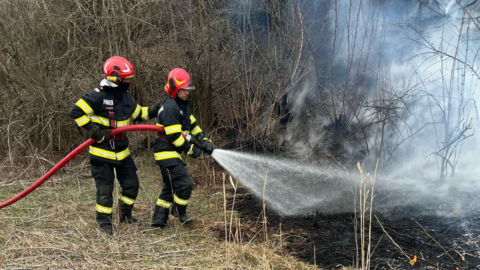 Incendiu de vegetație usată, la Valea Lungă. Intervin pompierii militari din Blaj