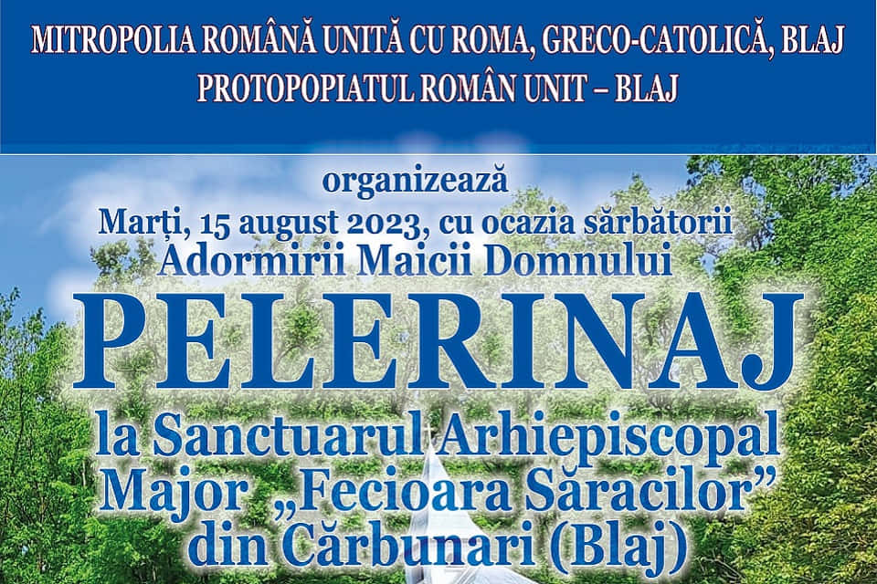 Mitropolia Română Unită cu Roma, Greco-Catolică și Protopopiatul Român Unit – Blaj organizează marți, 15 august 2023, cu ocazia Sărbătorii Adormirii Maicii Domnului, tradiționalul pelerinaj la Sanctuarul Arhiepiscopal Major al Bisericii Române Unite cu Roma închinat Fecioarei Săracilor din Cărbunari (Blaj).