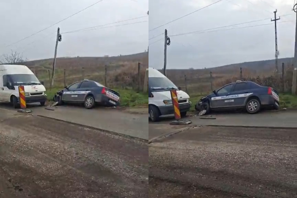 Mașina Poliției Locale din Jidvei, implicată într-un accident rutier pe DJ 107. Șoferul ar fi fost băut