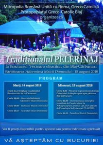 Miercuri, 15 august 2018, are loc tradiționalul pelerinaj de la Sanctuarul din Cărbunari