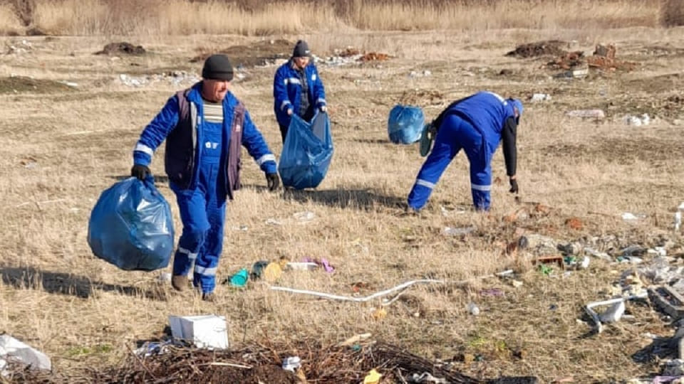 Muncitori din cadrul SGA Alba, formația de lucru Blaj, au adunat deșeuri menajere aruncate pe malurile râului Târnava, în aval de Tiur