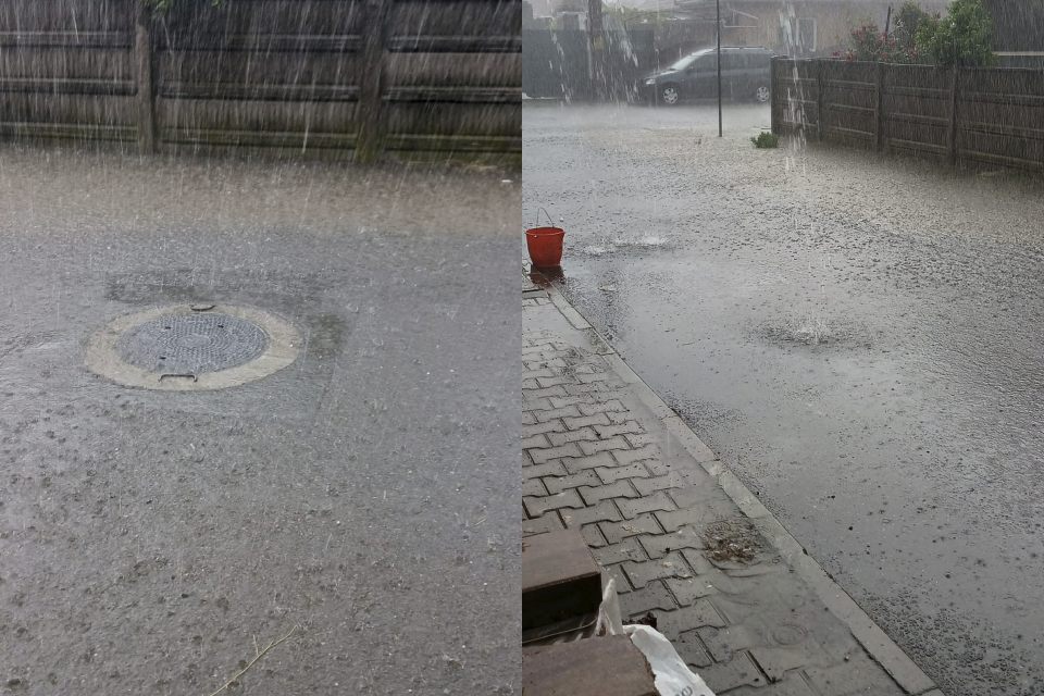 După doar câteva minute, rigolele și sistemele de canalizare pluvială nu au mai putut face față, iar unele străzi au fost inundate.