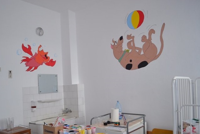 Pereţii secţiei de pediatrie de la Spitalul Municipal Blaj au fost animaţi de personaje îndrăgite din desene animate