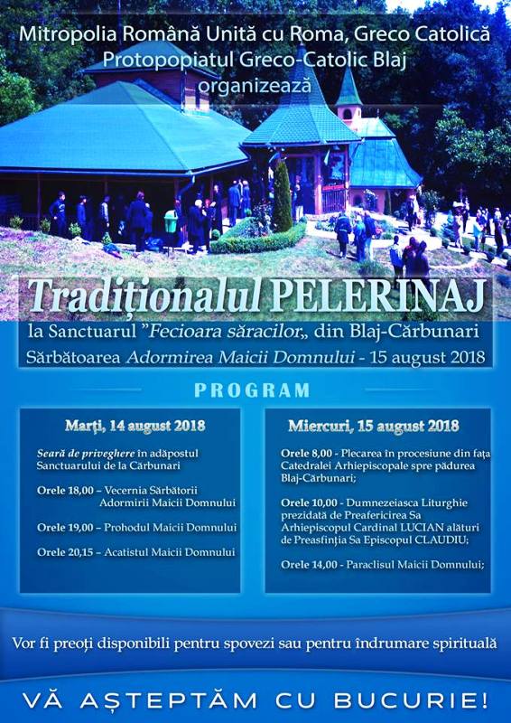 Mitropolia Română Unită cu Roma, Greco-Catolică, și Protopopiatul Român Unit – Blaj, vă invită miercuri, 15 august 2018, cu ocazia sărbătorii Adormirii Maicii Domnului, să luați...