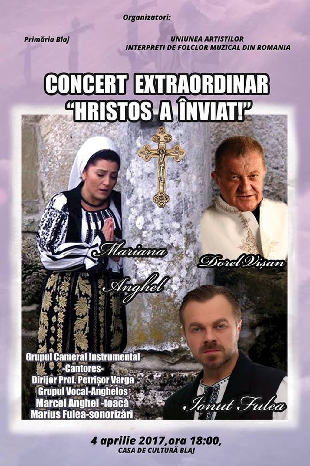 Primăria Municipiului Blaj, în parteneriat cu Uniunea Artiştilor Interpreţi de Folclor Muzical din România, organizează, marţi, 4 aprilie 2017, de la ora 18.00, concertul extraordinar de...