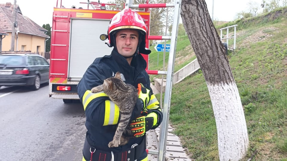 „Stația de pompieri Blaj a fost solicitată să intervină pentru salvarea unui pui de pisică blocat de 2 zile într-un copac în Mun. Blaj, str. Tudor Vladimirescu. Acesta a fost coborât din copac în siguranță de către pompierii militari și predat aparținatorilor. Forțele alocate: 1 autospecială de stingere cu apă și spumă”, a transmis ISU Alba.