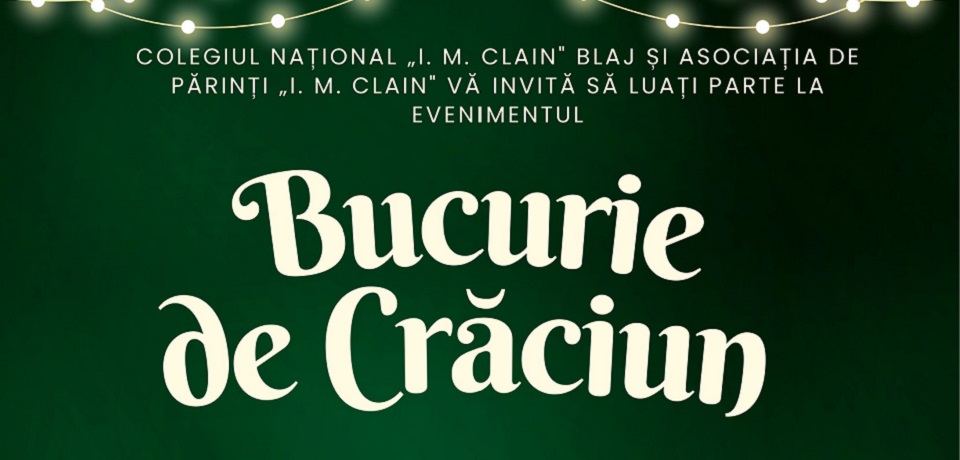 „Școala noastră este, întâi de toate, a copiilor. Fiindcă sărbătoarea Crăciunului este cea mai iubită de ei, vă invităm să le fiți alături la evenimentul „Bucurie de Crăciun. Târg de sărbătoare, pentru mic și mare”, pentru a vă încânta cu surprizele pe care vi le pregătesc și pentru a vă umple inimile cu plăcerea de a dărui”, se arată în invitația Colegiului Național „Inochentie Micu Clain”.