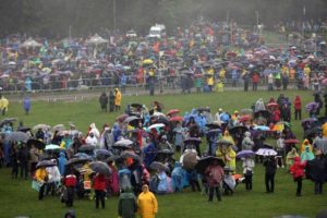 Credincioșii s-au adunat la Șumuleu încă din timpul nopții. Mulți dintre ei au înnoptat în bisericile-monumente istorice, care au rămas deschise special pentru a-i adăposti pe pelerini. Prognoza meteo nu este deloc una bună, credincioșii au venit cu pelerine și cu cizme de ploaie.